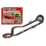 Experience the high-speed thrills of the hit movie "Cars" for yourself with Carrera's Go!!! Race-o-Rama. With approximately 18 feet of track, this racecourse comes with two 1:43-scale race cars based on the film characters Lightning McQueen and Chick Hicks. With twists, turns, ramps, and even places where the two racing cars can collide, it's a thrilling race from start to finish.