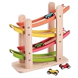 (More customer reviews)When I recieved this item I waited a few days before I opened the box.I had a few moments to myself so I though, "I'll go put it together."When I opened the box, I was shocked.No need to put it together since the item was about as big as a notebook piece of paper.In the picture it looked as though it would come up to my knees.I am not sure it comes up to my 2 year olds knees.For the price of this item I would think it would be way bigger.It has 3 ramps, but since the size is so small it doesn't take long to get to the bottom.The cars are about the size of a cell phone sim card with wheels.The pro of this item is that it is sturdy.