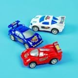 3.25 inches, plastic, pull back and release race cars. 4 red, 4 white, and 4 blue cars in assortedstyles.