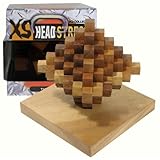 Test Your Mind's Muscle -- A beautiful configuration of cubes, diamonds and pyramidal design, this wooden puzzle is easy to look at, but challenging to solve. Over 24 interlocking pieces of various lengths make up the puzzle. The object is to disassemble then reassemble the structure. Includes a wood display base. Difficulty level 3, very difficult. Size: 5" diameter. Ages 8 and up.